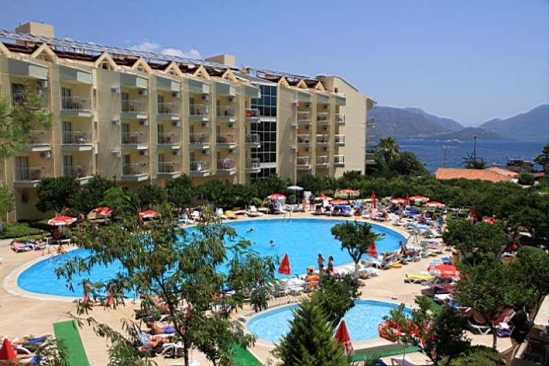 Grand Yazıcı Club Marmaris Palace oteli İçmeler bolgesi denize sifir Herşey Dahil konaklamalı ucuz ekonomik tatil otelidir 12 Yaş 1 çocuk ailesi yanında konaklar
